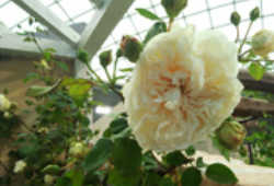 花色/クリーミーイエロー 花期/四季咲き 花径/中輪 花形/ロゼット 香り/強香